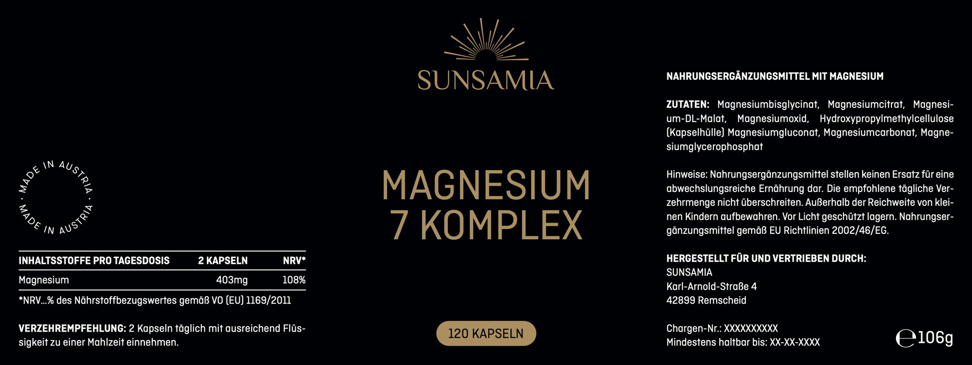 Unser Magnesium-7-Komplex vereint die Synergien von sieben hochwertigen Magnesiumverbindungen, die optimal vom Körper aufgenommen werden können. Diese Mischung sorgt für eine umfassende Versorgung und deckt die vielfältigen Funktionen ab, die Magnesium im Körper übernimmt.