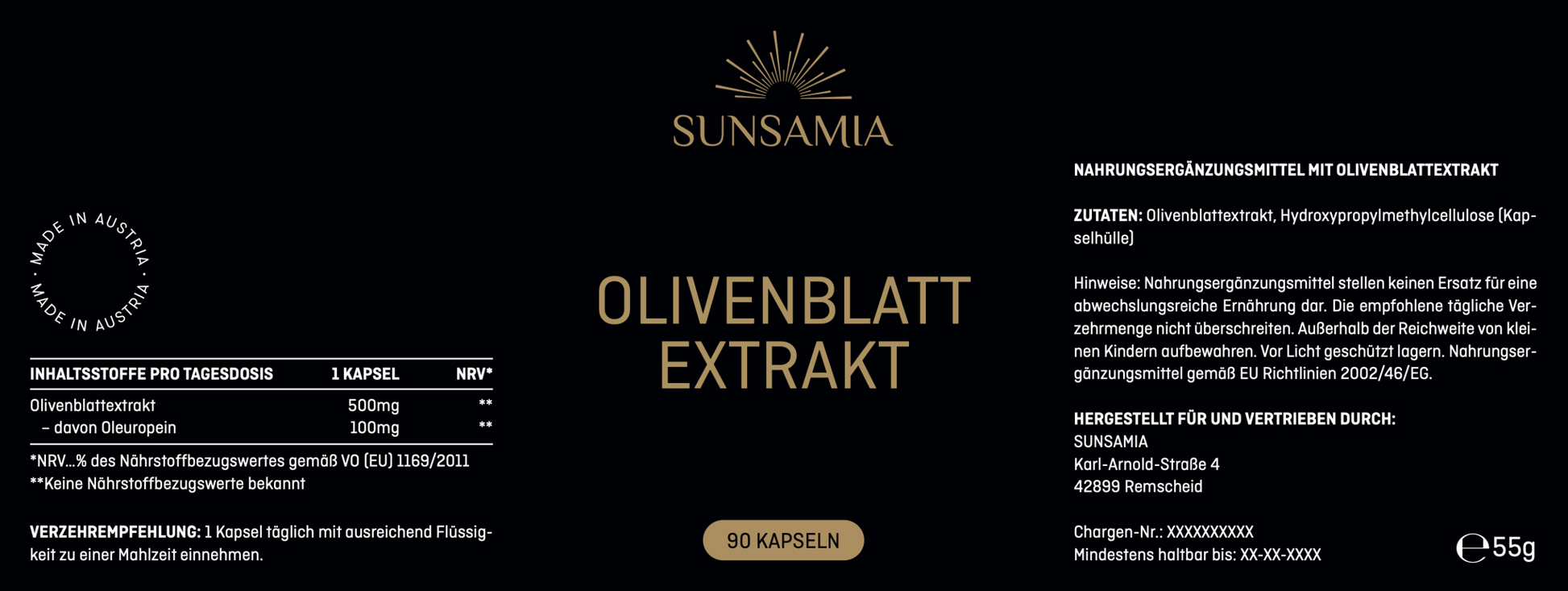 500mg Olivenblatt pro Kapsel, davon 100mg Oleuropein
