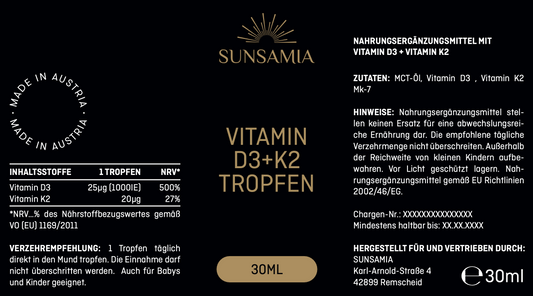 Ich bin absolut begeistert von den Produkten von sunsamia! Die Qualität ist hervorragend, und ich merke bereits nach kurzer Zeit eine positive Veränderung. Besonders das Vitamin D3 + K2 hat mir geholfen, mich fitter und energiegeladener zu fühlen. Klare Kaufempfehlung!